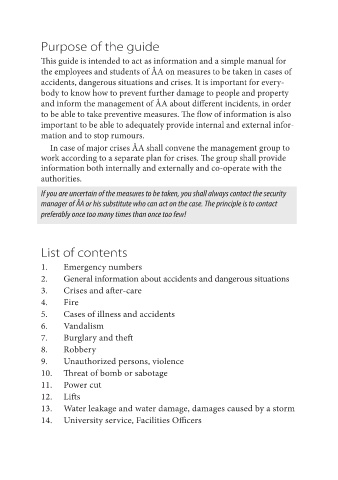 the employees and students of ÅA on measures to be taken in cases of