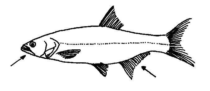 Antal fjäll i sidolinjen: 65-70 Antal fenstrålar i analfenan: 14-18