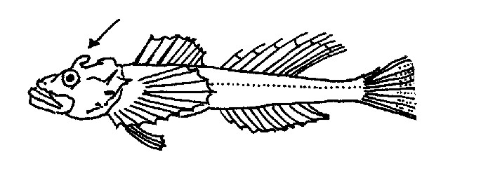 Hornsimpan har fyra skrovliga knölar (horn) på sitt breda huvud.